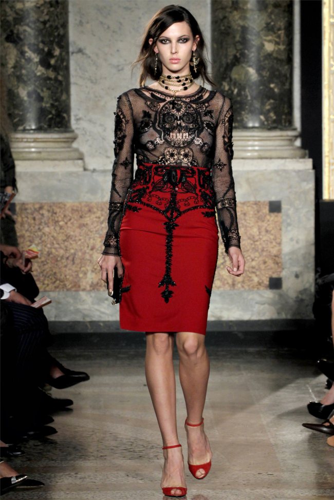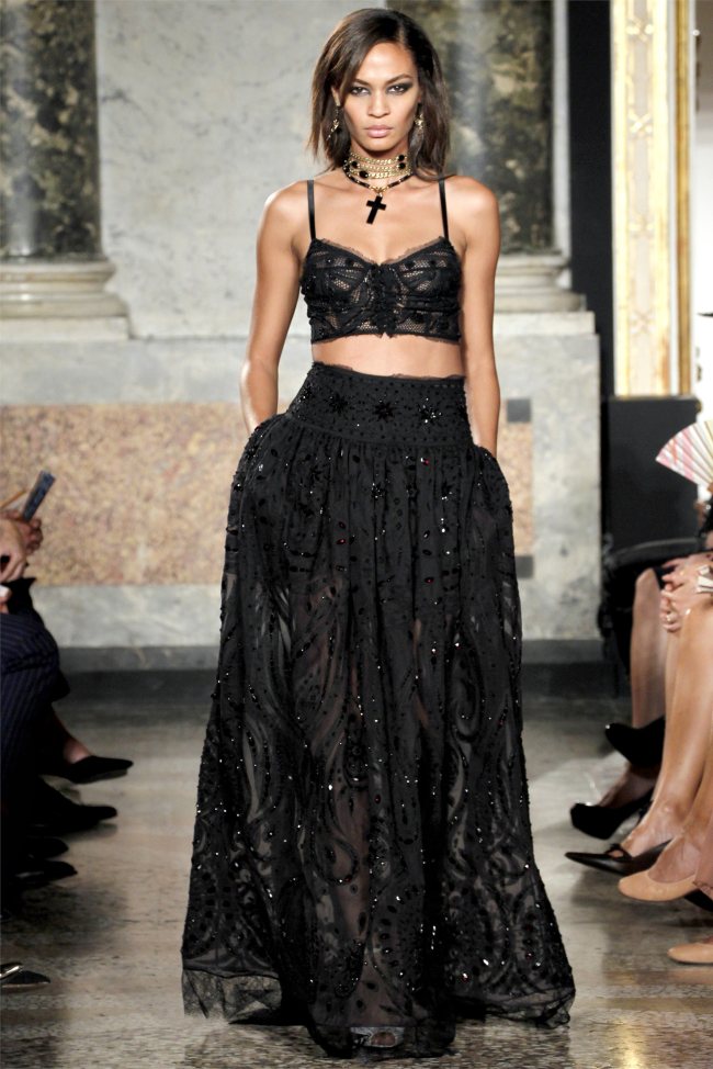 Milan Fashion Week ontem, coleção rica em detalhes e acabamentos tendo o glam do rock and roll como tema, embora a imprensa ateste um Egito style feelings: a cigana foi no show de rock, pronto! Rendas preciosas e poucas cores, preto, branco, vermelho, dourado, cruzes e sucesso de vendas #Certeza